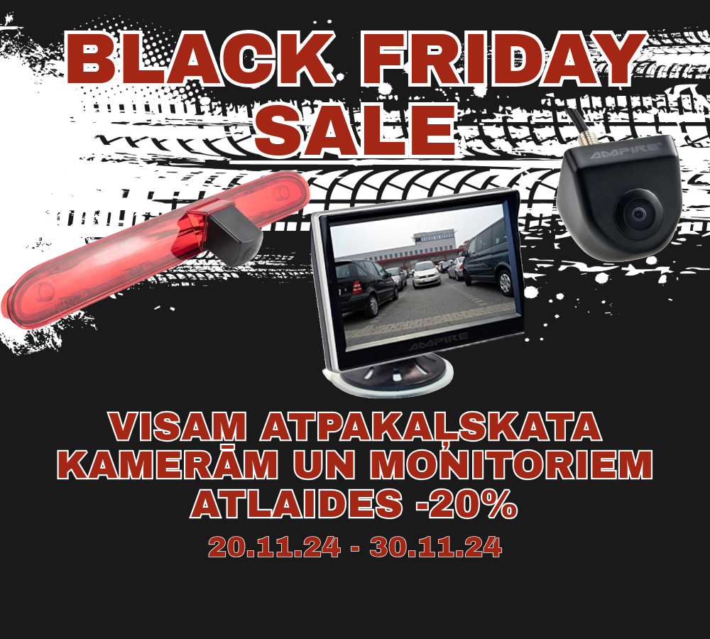 BLACK FRIDAY SALE atpakaļskata kamerām, monitoriem un videoreģistratoriem!